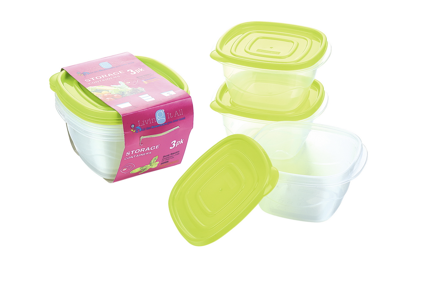PLASTIC SQUARE STORAGE CONTAINER 1200ML 3PK