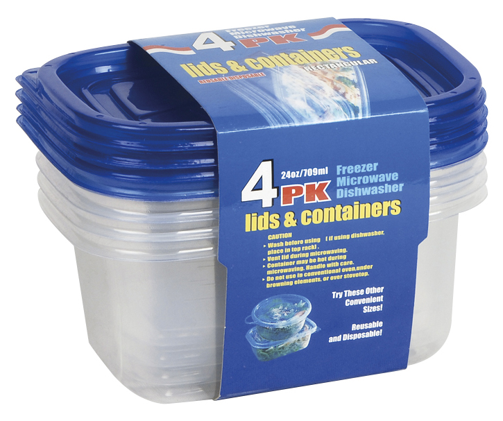 DISPOSABLE PLASTIC SQUARE STORAGE CONTAINER 4PK 1000ML