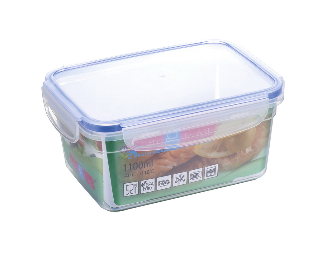 PLASTIC RECT SNAP& LOCKS STORAGE CONTAINER 1100ML