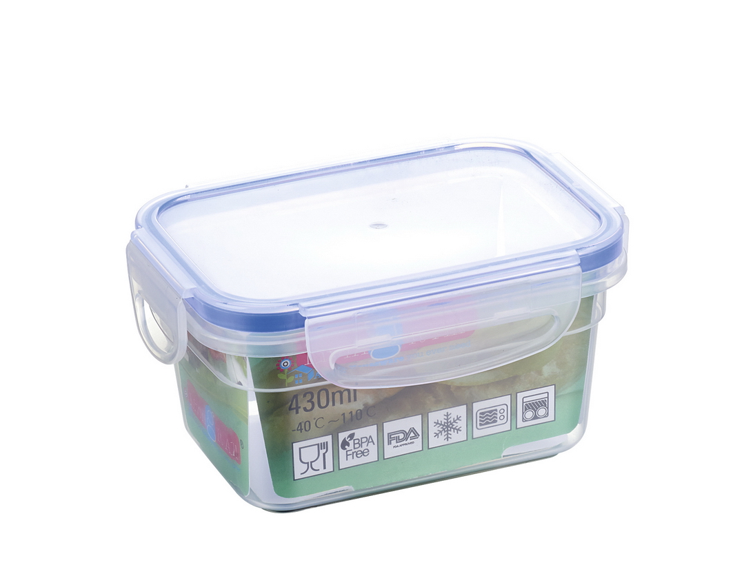 PLASTIC SQUARE SNAP& LOCKS STORAGE CONTAINER 430ML