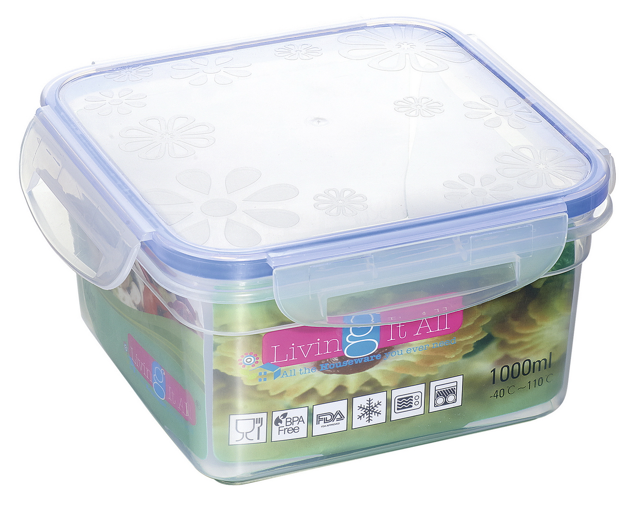 PLASTIC SQUARE SNAP& LOCKS STORAGE CONTAINER 1000ML
