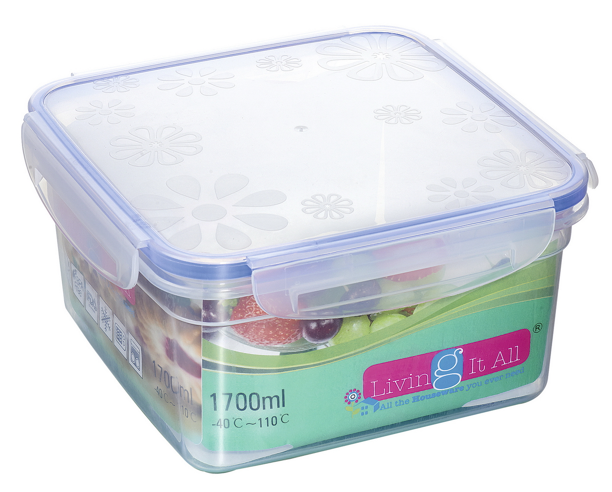 PLASTIC SQUARE SNAP& LOCKS TORAGE CONTAINER 1700ML