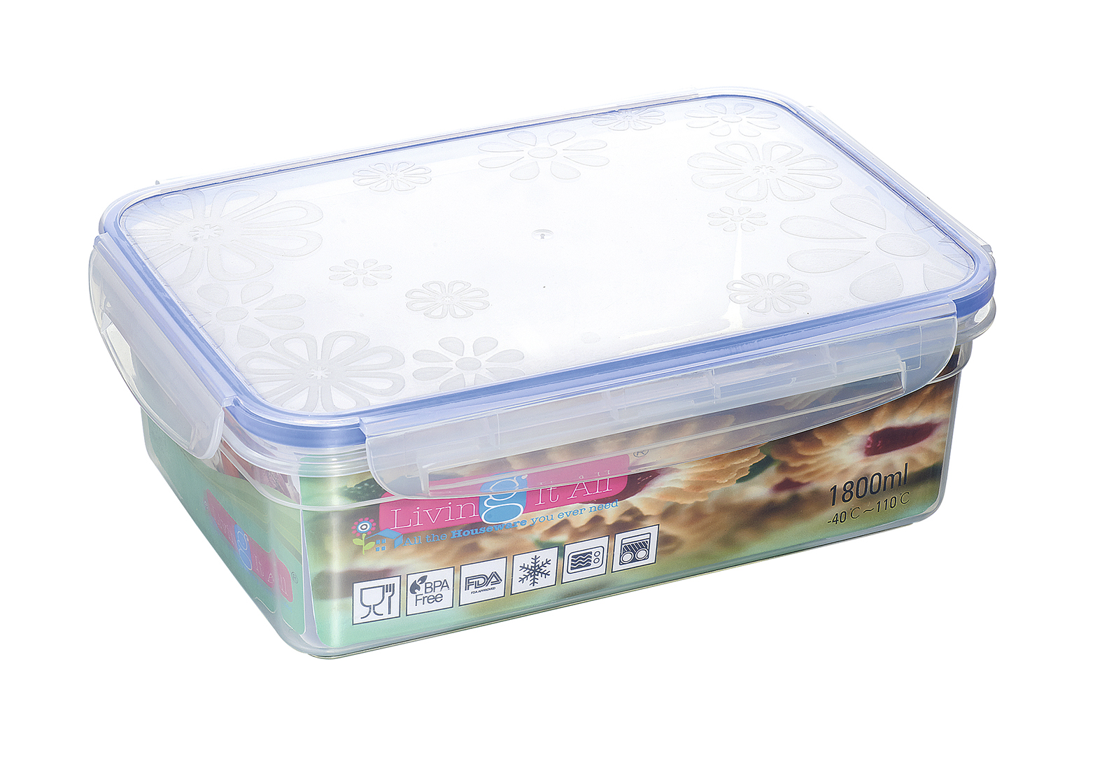 PLASTIC RECT SNAP& LOCK STORAGE CONTAINER 1800ML